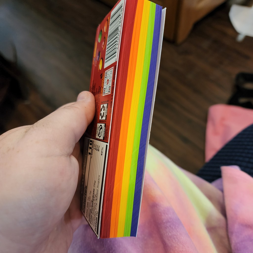 Journals make me so happy. This journal has a candy box for a cover, and so many colors of paper. My journal collection grows larger every year. They all get used eventually. My general rule is to only use gel pens. I use black gel pens on colorful paper, and colored gel pens on white paper. Color is intoxicating.