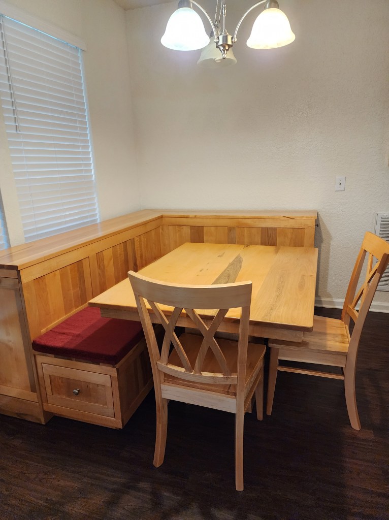 One year ago my husband ordered me a dining nook from a wonderful Amish company that makes everything by hand. Last night it arrived, and I could not be more thrilled.