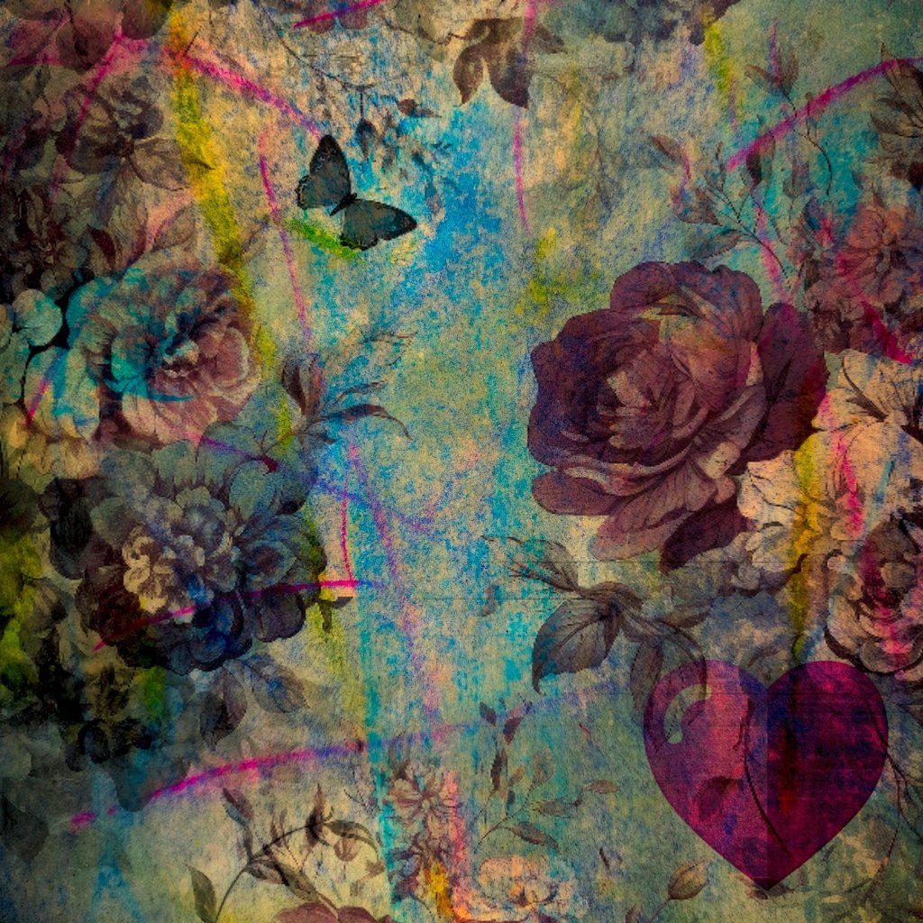 This is a pastel painting blended with text and three layers of scrapbook pages. I could just collect millions of pages of digital scrapbook paper. I love them so much.