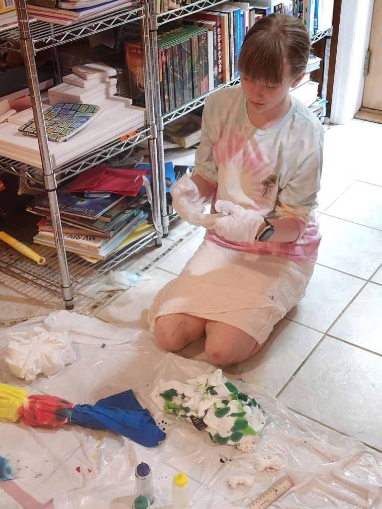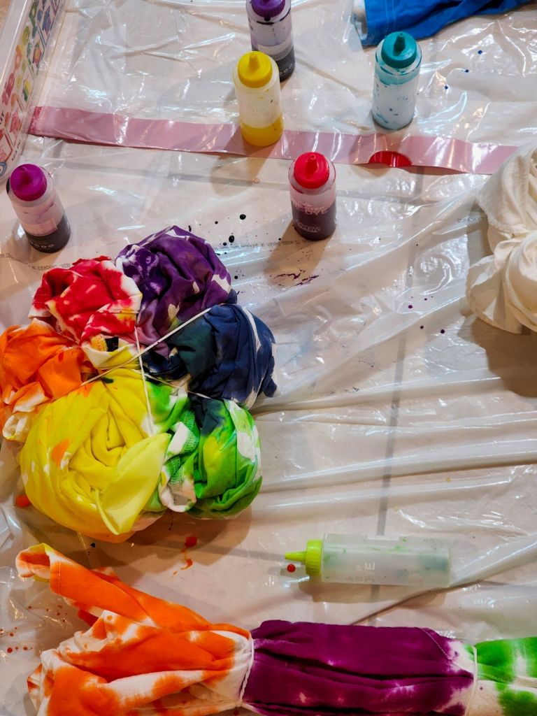 My Mother’s Day weekend has been a joy! Yesterday, my husband C took us all to a fun event in the city. Then we grabbed lunch and dessert at The Cheesecake Factory. Today I woke up to a wonderful gift, we watched church, and then we got pizza for lunch. After that, we tie dyed a bunch of clothes. The girls got shirts and dresses. I made only dresses. C made shirts, of course.