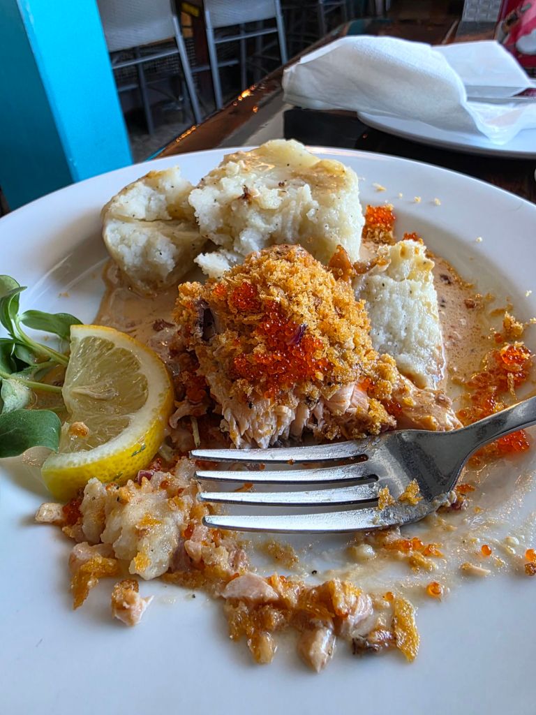 Today I went out to lunch by myself for the first time in years. I’ve been feeling really stuck in the house, and I almost didn’t go. I had wanted to go with A, and she was babysitting. But I went alone to my favorite restaurant on the island and read books and enjoyed my favorite dish.